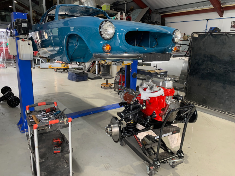 July 2025: Engine, axle and gearbox ready to go into the 1969 S